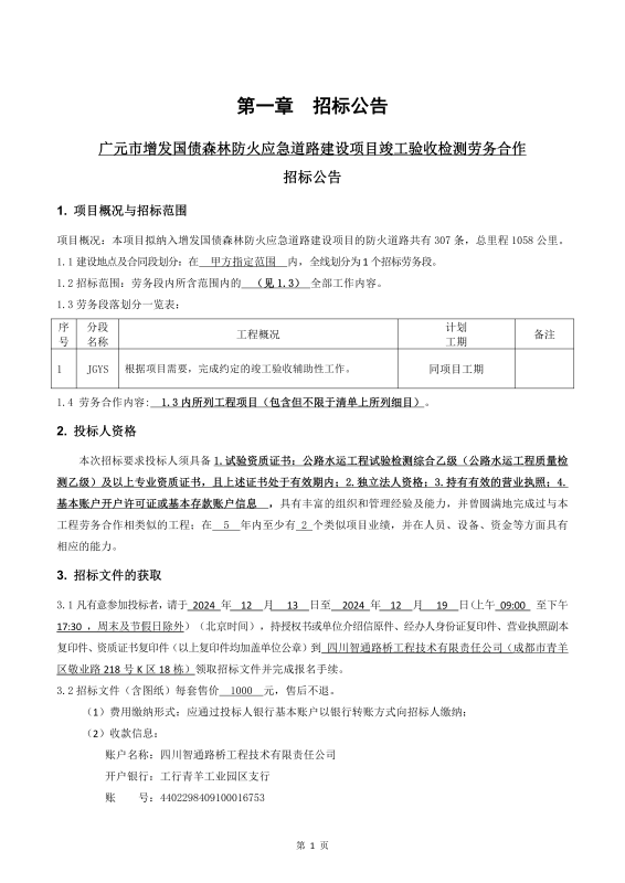 廣元市增發(fā)國債森林防火應(yīng)急道路建設(shè) 項目竣工驗收檢測勞務(wù)合作招標公告